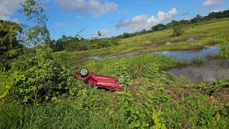 Imediatamente, PRFs se deslocaram para interceptar os veículos. No primeiro momento a equipe localizou um Chevrolet/Onix de cor vermelha que, ao notar a presença policial, empreendeu fuga. Durante o acompanhamento tático, numa tentativa de despistar os policiais, o condutor saiu da pista e adentrou em um matagal, perdendo o controle do veículo e capotando. No interior do carro, havia apenas uma pessoa, que foi detida no local.