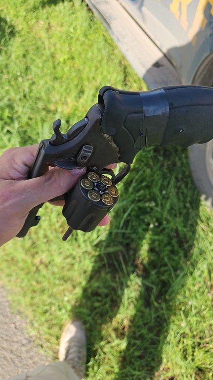 Em seguida, com o apoio do PETO 02, a equipe se reposicionou para interceptar o segundo carro, um VW/Voyage de cor branca. Dentro do veículo, encontraram dois homens portando um revólver calibre .38, seis celulares e R$8.661 em espécie. Uma investigação preliminar revelou que o trio era suspeito de integrar uma quadrilha que sequestrou e torturou um empresário em Feira de Santana para obter vantagem econômica.
